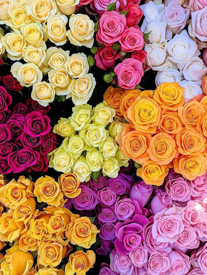 A stunning arrangement of triple rainbow roses and matching flowers — bright, joyful, and perfectly aesthetic.