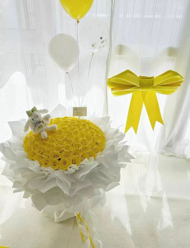 Choose from our florist-curated surprise bundle worth 88$, featuring a vibrant mix of blue, yellow, white, purple, pink, and red blooms. Each arrangement is thoughtfully arranged to create a cheerful, photogenic, and luxurious.